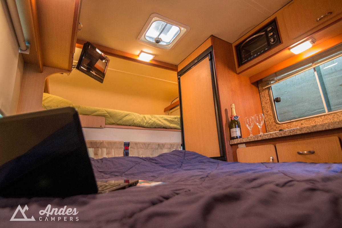 Estanques de agua (Litros), fresca:80 / grises: 80 / negras:70 Parrilla porta equipaje superior Cable puente de bateria Mapas de ruta Chile y Argentina