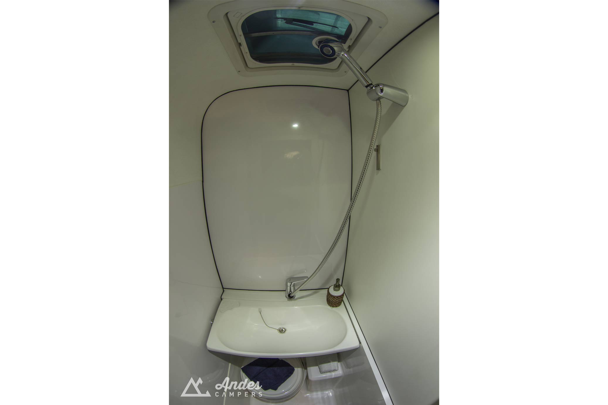 Baño con ducha, WC, lavamanos, agua fría y caliente